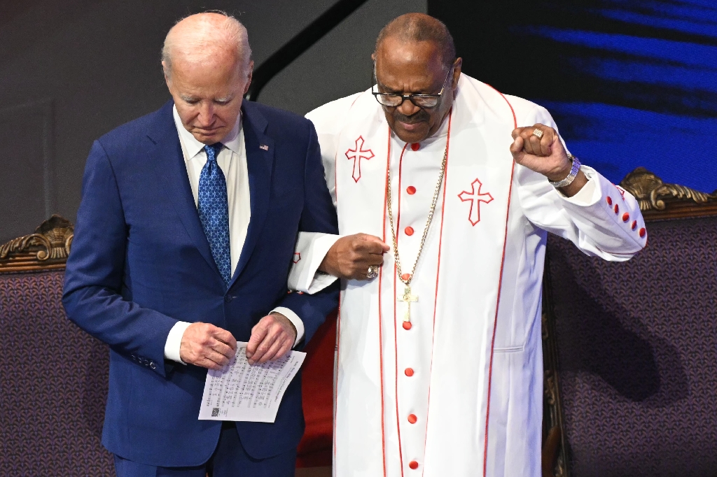 (AFP) - Embattled US President Joe Biden sought out safe ground Sunday, courting Black voters at a church as he ...
