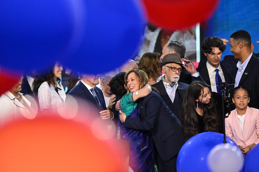 (AFP) - As red, white and blue balloons streamed onto a Chicago stage and people danced in the aisles, Kamala ...