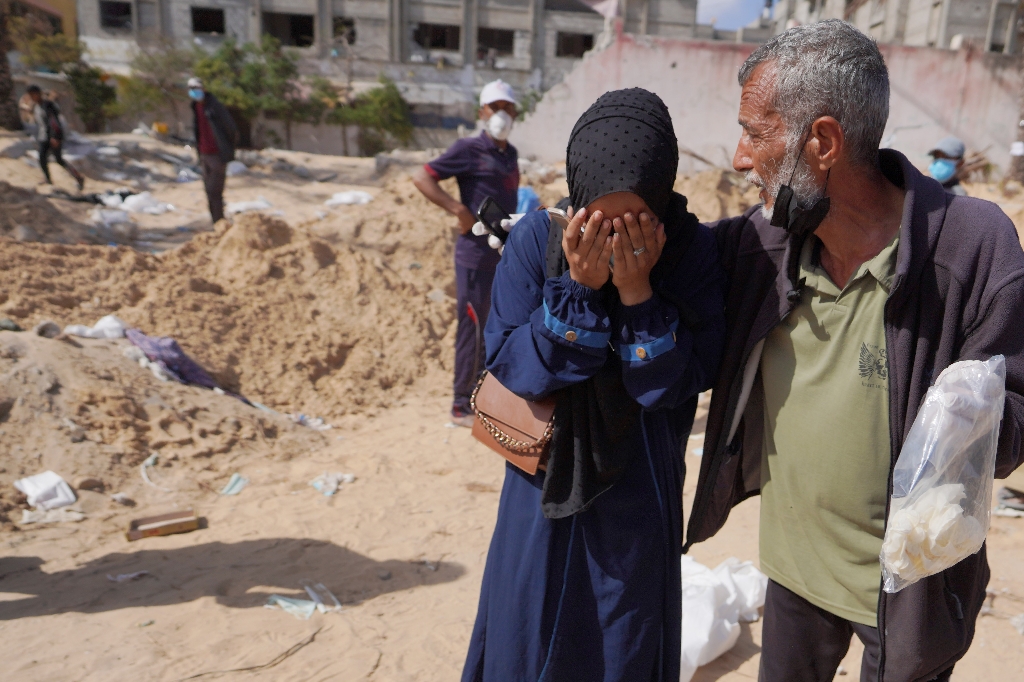(AFP) - Gaza's civil defence said Sunday dozens of bodies had been found buried at a hospital complex previously raided ...