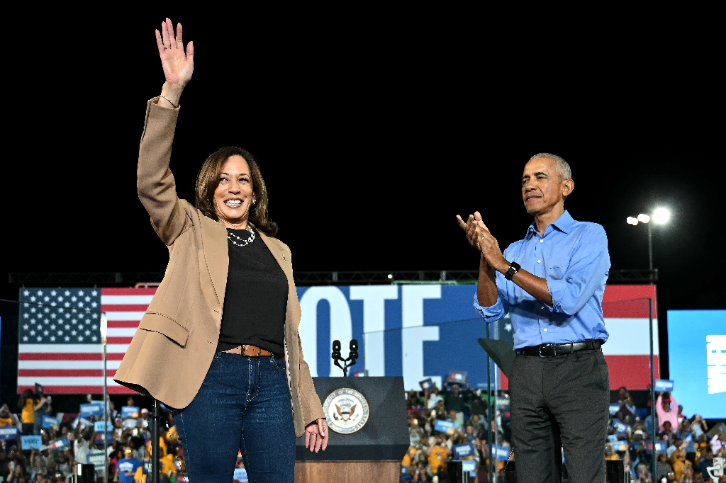 (AFP) - Kamala Harris held a star-studded rally Thursday in swing state Georgia, where former US president Barack Obama and ...