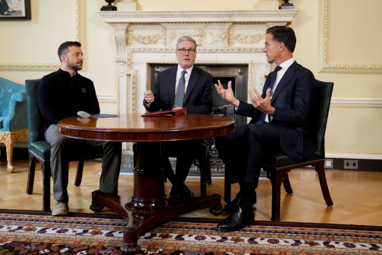 London (AFP) - President Volodymyr Zelensky met UK premier Keir Starmer and Nato chief Mark Rutte in London Thursday, as ...
