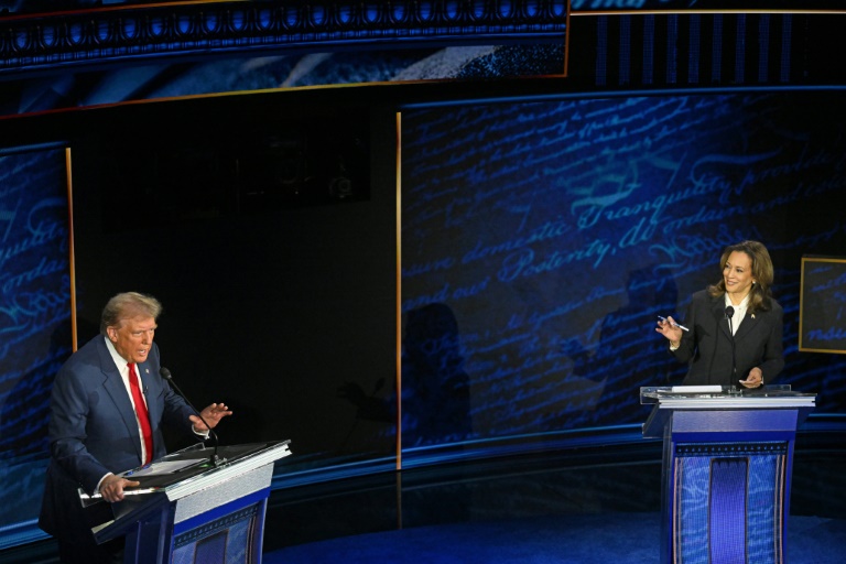(AFP) - Kamala Harris went on the offensive against Donald Trump in a fiery televised debate Tuesday, getting under her ...