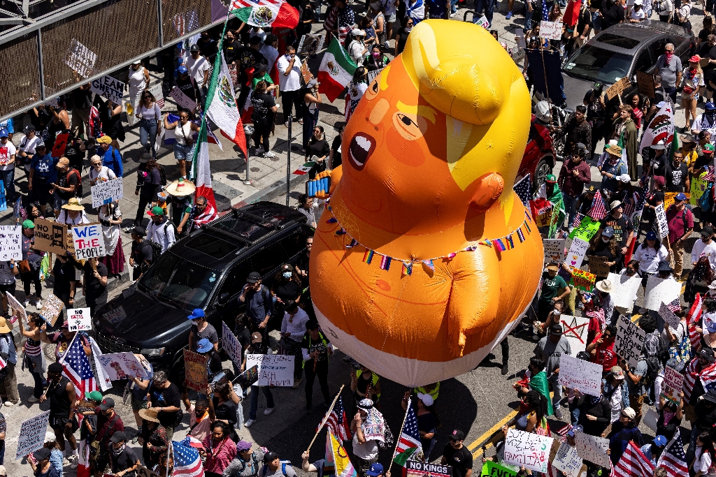 (AFP) - A giant orange balloon depicting Donald Trump in a diaper towered over one "No Kings" protest Saturday, as ...