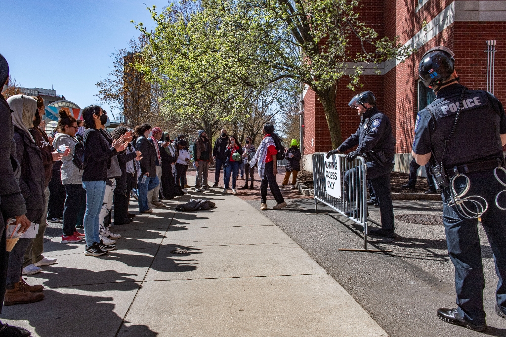Boston (AFP) - Police in riot gear detained about 100 people as they cleared a pro-Palestinian encampment at a Boston ...
