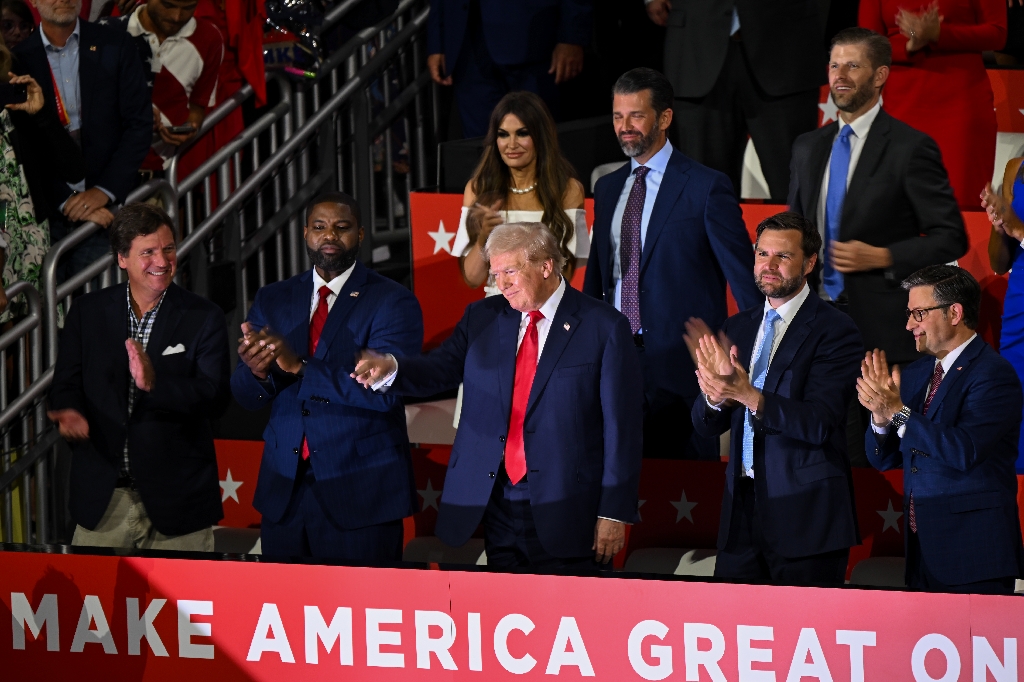 (AFP) - Donald Trump received a hero's welcome Monday as he entered the Republican National Convention arena with a bandaged ...