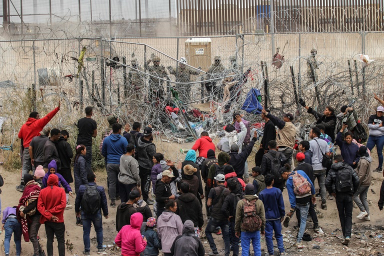 Houston (AFP) - A "large group of migrants" crossing into the United States from Mexico broke through razor wire Thursday ...