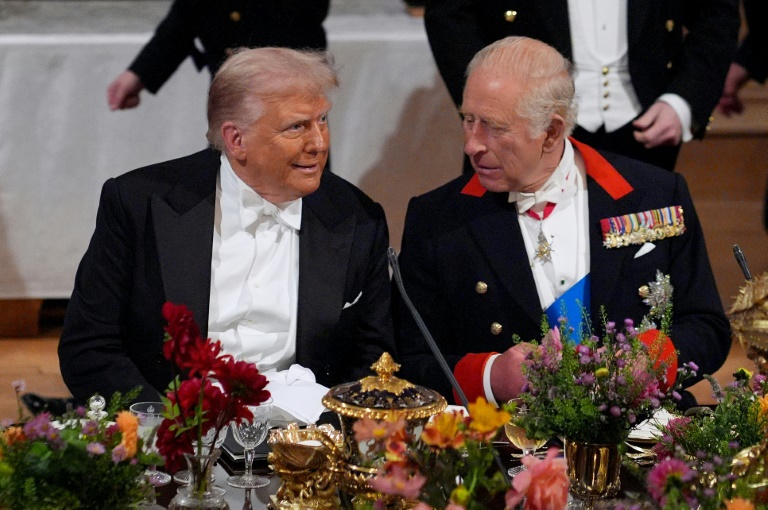 (AFP) - US President Donald Trump headed for a historic second UK state visit hosted by his "friend" King Charles ...