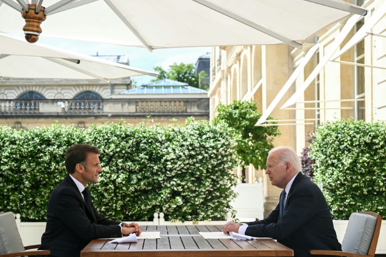 Paris (AFP) - President Joe Biden on Saturday vowed Washington was "standing strong" with Ukraine as French counterpart Emmanuel Macron ...