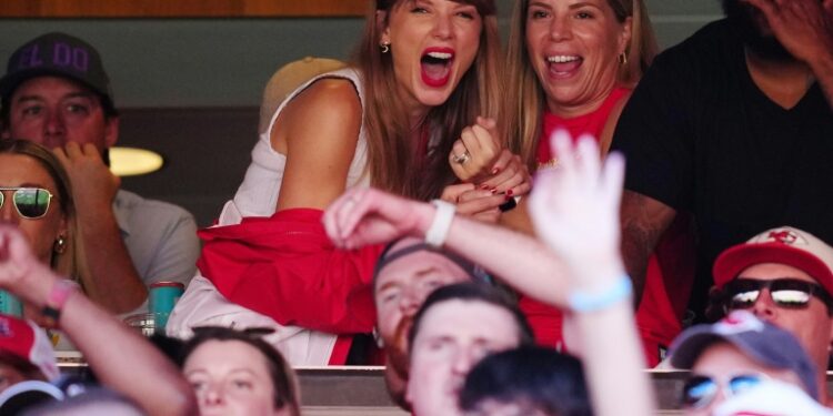 Swift attended the Kansas City Chiefs’ home game against the Chicago Bears, sitting in a luxury box with the tight end’s mother, Donna.