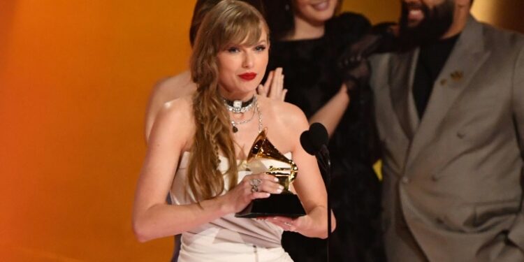 Los Angeles (AFP) – Taylor Swift made Grammys history Sunday by winning her fourth Album of the Year prize, the most of any artist — the crowning moment of a night of electric performances and breakthrough wins.
