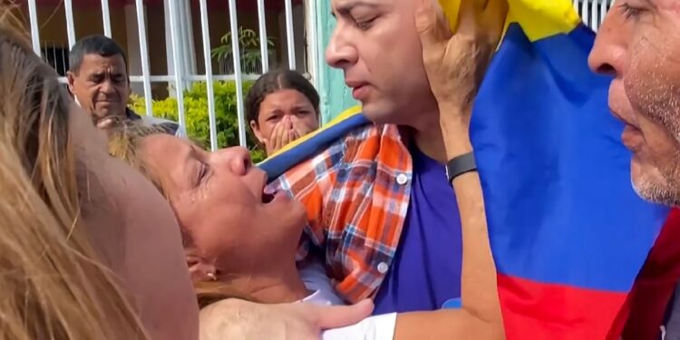 (AFP) – Tears of joy and relief flowed freely Tuesday as Venezuelan Maikel Olivera returned home to his mother’s embrace after four months of “hell” in a Salvadoran prison. The 37-year-old is one of 252 Venezuelan migrants flown home last Friday from a notorious “anti-terrorism” prison where they were sent by the United States in March in a fear-inducing crackdown on undocumented migrants.