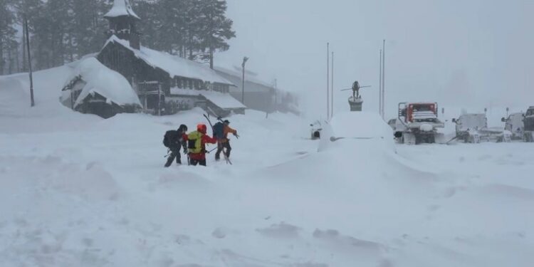 Los Angeles (United States) (AFP) – A frantic search was underway Tuesday for ten back-country skiers missing in an avalanche in the mountains of California, where a huge storm has dumped heavy snow. Officials say a group of 16 people — four guides and 12 clients — were caught up in the avalanche on Castle Peak in the Tahoe area late Tuesday morning. Six have been accounted for, but mountain rescue teams battling treacherous conditions were still trying to reach them while also looking for the others, as snow continued to fall and daylight faded.