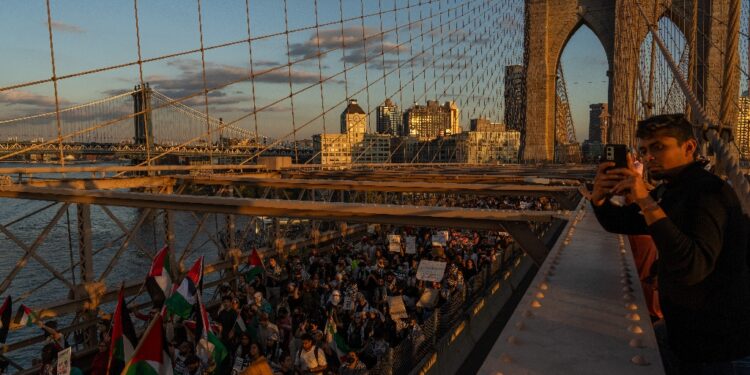 Thousands of pro-Palestinian protesters poured onto the streets of Brooklyn, New York’s largest district on Saturday to voice their anger at Israel’s bombardment of the Gaza Strip.
