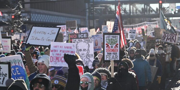 (AFP) – Thousands of protesters took to the streets of Minneapolis on Friday in the latest show of anger over President Donald Trump’s immigration crackdown, as a prominent US journalist was charged over his coverage of protests in the northern city. People marched with signs blasting Immigration and Customs Enforcement (ICE), the agency leading Trump’s mass deportation drive, in response to a call for a “national shutdown” across the United States. Minneapolis has become the epicenter of the immigration policy backlash after two protesters, both US citizens, were shot dead by federal agents this month.