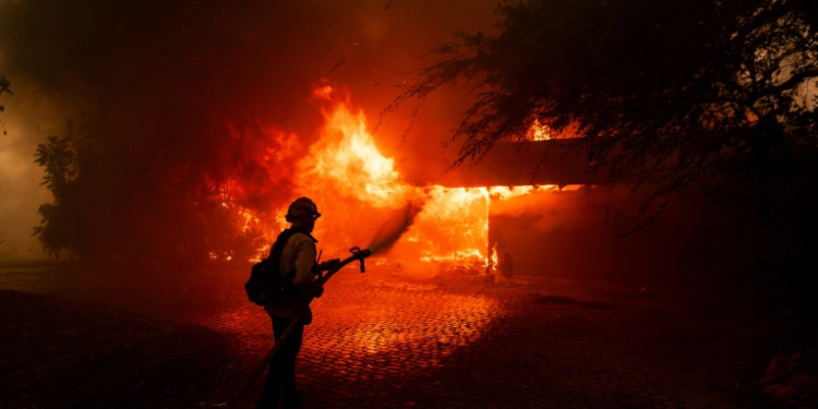 A fast-moving fire near Los Angeles has forced thousands from their homes and destroyed dozens of properties. ©AFP