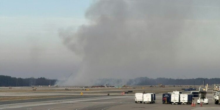 New York (AFP) – A United Airlines Boeing 777 bound for Tokyo had to turn back to Washington’s Dulles International Airport on Saturday after an engine failed during takeoff, igniting a brush fire near the runway, officials said. No injuries were reported among the 275 passengers and 15 crew members aboard the wide-bodied jet, which had to make an emergency landing.