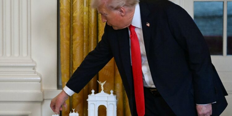 (AFP) – US President Donald Trump’s administration on Friday revealed renderings for a colossal triumphal arch proposed for construction in Washington near some of the nation’s most revered monuments. At 250 feet (76.2 meters) it would pip Mexico City’s Monument to the Revolution by 30 feet, making it the largest structure of its kind in the world, and knocking Pyongyang’s Arch of Triumph to third place.