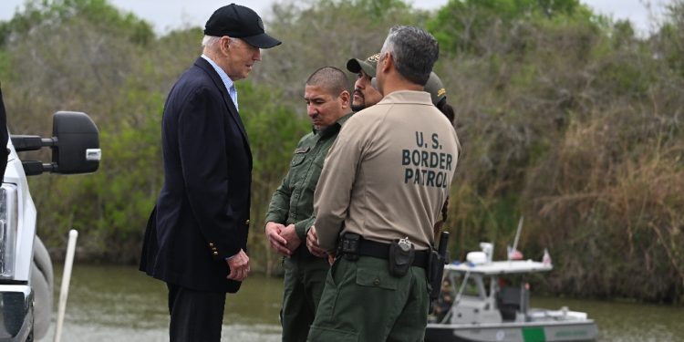 But Biden is trying to turn the issue back on Trump by accusing him of sabotaging efforts to pass a bipartisan immigration bill that would give border forces more staff and money. “Here’s what I would say to Mr Trump,” Biden said. “Instead of playing politics with this issue, instead of telling members of Congress to block this legislation — join me.” Dressed in a jacket and baseball cap, Biden earlier walked with border patrol agents along the river, where a boat, trailer and other vehicles were gathered. Biden was accompanied by his immigration chief Alejandro Mayorkas — who was impeached by Republicans just over two weeks ago in a sign of how divisive the issue has become. Again the choice of location was significant: migrant crossings around Brownsville dipped by nearly a quarter in January, thanks partly to the Biden administration’s cooperation with Mexico.