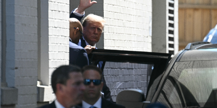 Former US president Donald Trump waves as he departs the Capitol Hill Club following a meeting with US House Republicans on Capitol Hill in Washington, DC, on June 13, 2024 / ©AFP