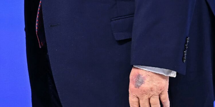 (AFP) – Photographs of fresh bruising on US President Donald Trump’s hand raised eyebrows on Thursday, but the White House dismissed renewed speculation over his health, saying the 79-year-old had simply hit a table. Trump has been seen with frequent bruising on his right hand since returning to the White House last year, often concealing it with bandages and makeup.