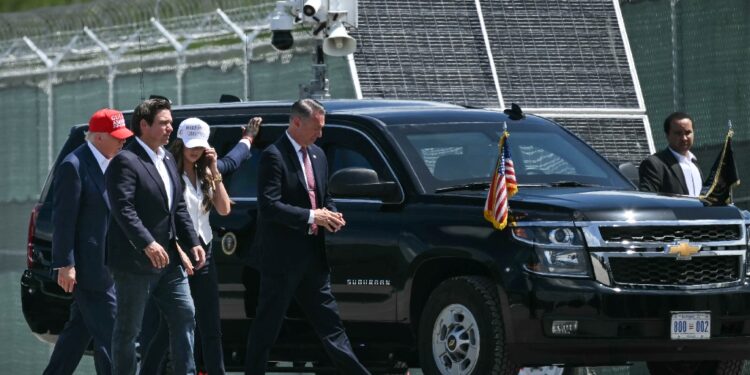 (AFP) – US President Donald Trump toured a new Florida migrant detention center dubbed “Alligator Alcatraz” on Tuesday, boasting about the harsh conditions and joking that the reptilian predators will serve as guards. The $450 million camp has been built on a disused airfield deep in the Florida Everglades and is surrounded by swamps that are home to creatures including alligators and poisonous snakes.