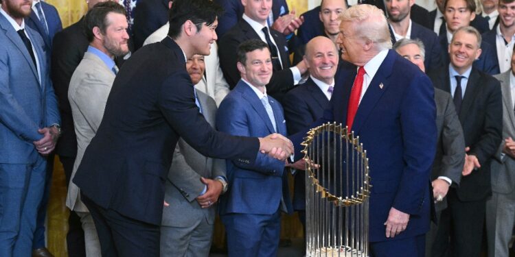(AFP) – President Donald Trump paid tribute to the World Series champion Los Angeles Dodgers at the White House on Monday, praising the likes of Shohei Ohtani and Mookie Betts after what he described as a “legendary” season. Almost all of the star-studded Dodgers lineup, who clinched their eighth World Series crown in October with a 4-1 series defeat of the New York Yankees, were in attendance.
