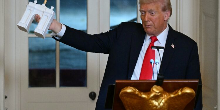It’s the largest in a series of renovations Trump has made to the White House since returning to power in January, including covering the Oval Office with gold decor and paving over the Rose Garden. Trump also showed the guests his plans for a new project — a huge arch near the Lincoln Memorial in Washington. He held up a model of the arch — which was dubbed the “Arc de Trump” after it was first revealed in AFP photos last week — and three options for sizes, one of which would be bigger than France’s Arc de Triomphe.