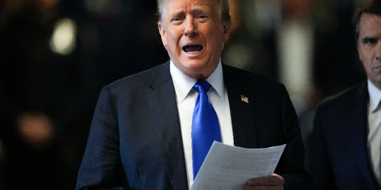 Former US president Donald Trump is pictured on May 30, 2024 at his New York hush money trial - just one of the many legal challenges he is facing / ©AFP