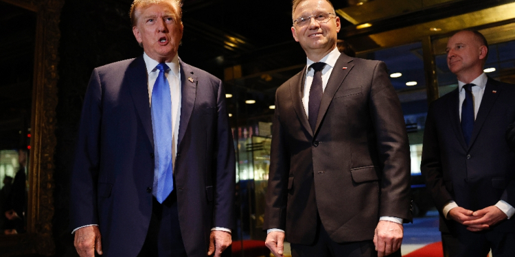 Donald Trump (L) met with Polish President Andrzej Duda at Trump Tower in New York, one in a series of meetings with foreign dignitaries as the Republican former US president campaigns for the White House in 2024 / ©AFP