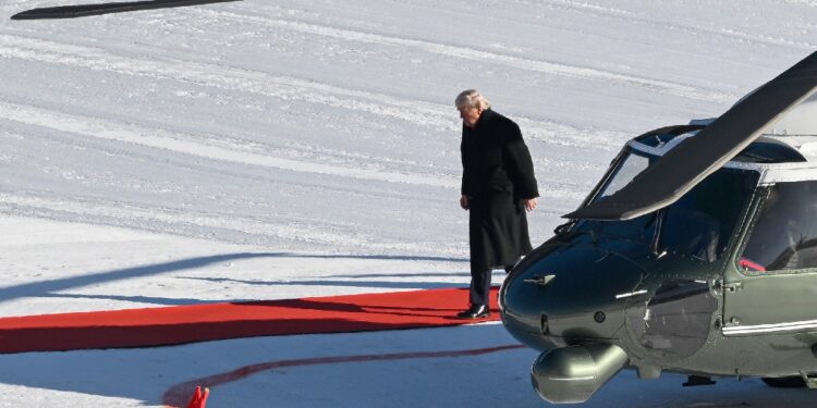 (AFP) – US President Donald Trump touched down in a tense Davos on Wednesday to give an “America First” speech that will push his world-shaking bid to seize control of Greenland. Trump’s claims over the Danish territory have dominated the meeting in the Swiss ski resort, where Trump landed by helicopter, stepping onto a red carpet laid in the snow. He arrived at the World Economic Forum some two hours behind schedule, after an electrical issue earlier forced Air Force One to turn back to Washington.