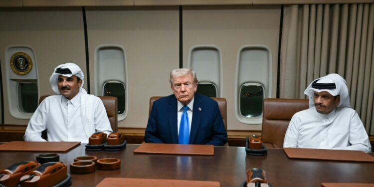 Aboard Air Force One at Qatar’s Al Udeid Air Base, which hosts the regional headquarters for the US military, Trump greeted Emir Sheikh Tamim bin Hamad Al Thani and Prime Minister Sheikh Mohammed bin Abdulrahman Al Thani. “What we’ve done is incredible peace to the Middle East, and they were a very big factor in it,” Trump said. He did not take questions before reporters were ushered out.