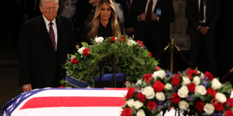 US President-elect Donald Trump and former US First Lady Melania Trump pay their respects in front of the flag-draped casket of former president Jimmy Carter at the US Capitol Rotunda in Washington, DC, on January 8, 2025 / ©AFP