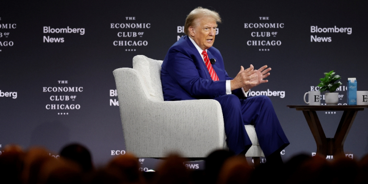 “The higher the tariff, the more likely it is that the company will come into the United States,” the former president Trump told an audience at the Economic Club of Chicago. “You make it so high, so horrible, so obnoxious” companies will “come right away,” he added.