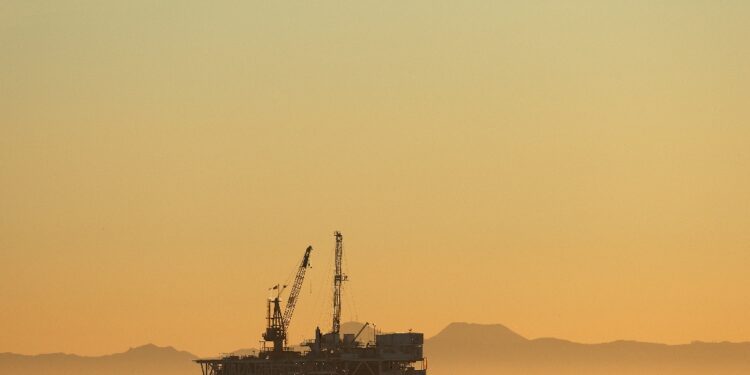 A gull flies with offshore oil and gas platform Esther in the distance on January 5, 2025 in Seal Beach, California; President Donald Trump is seeking to un-ban a prohibition on offshore oil drilling put in place by his predecessor Joe Biden / ©AFP