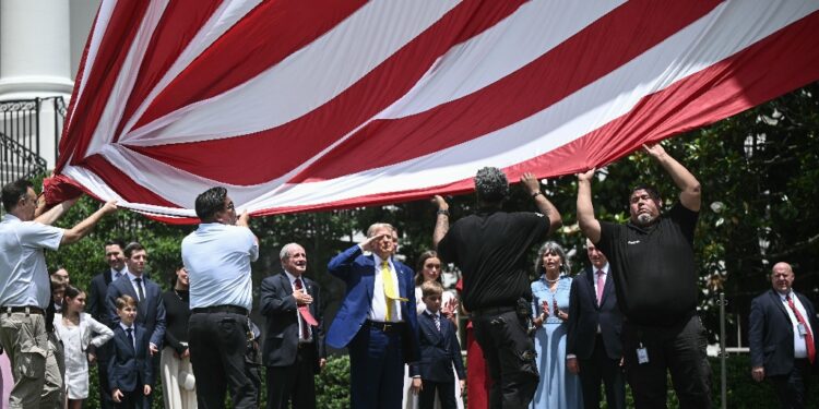 (AFP) – US President Donald Trump took time out Wednesday from deliberating on whether to bomb Iran to unveil two huge new flagpoles that he claimed are among the best in the world. Trump, 79, saluted as a giant Stars and Stripes flag was raised on one of the 88-foot (27-metre) poles in a brief ceremony on the South Lawn of the White House.