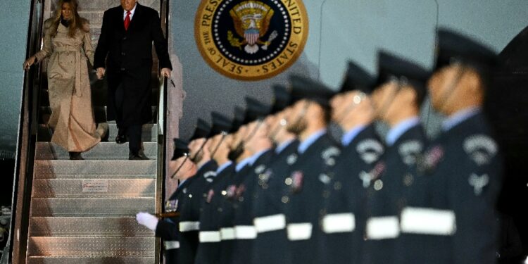 US President Donald Trump and First Lady Melania Trump arrived in the UK on Air Force One / ©AFP