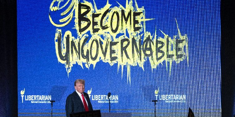“The Libertarian Party should nominate Trump for president of the United States,” he said to a mix of cheers and boos.