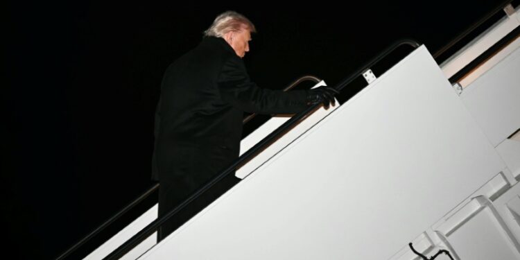 US President Donald Trump boards Air Force One at Joint Base Andrews on January 20, 2026. ©AFP