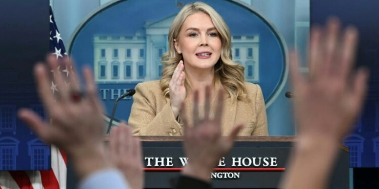 Washington (United States) (AFP) – White House Press Secretary Karoline Leavitt announced Friday she is expecting her second child, becoming the first person in the high-profile role to be pregnant.