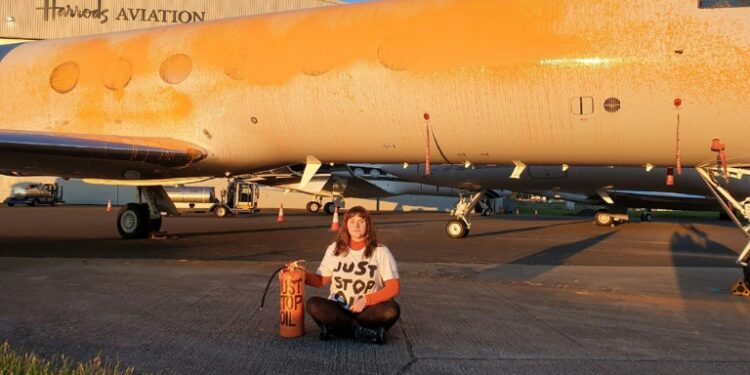 The protesters had entered the airfield at Stansted airport, northeast of London, after breaking through a fence and entering a private area before using the fire extinguishers filled with orange paint. The protesters claimed Swift’s jet had landed at Stansted “hours earlier,” but local police said that her jet was not at the airport at the time.