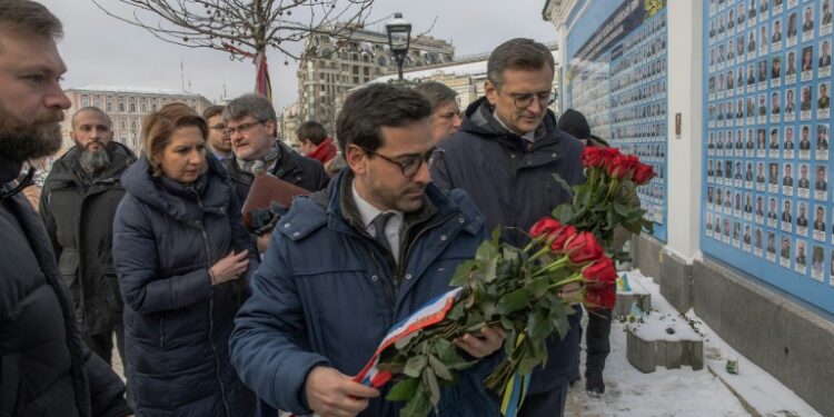 Kyiv (Ukraine) (AFP) – France’s new foreign minister Stephane Sejourne on Saturday renewed his country’s support to Ukraine, choosing Kyiv for his first official visit abroad, as the war with Russia nears a second anniversary.
