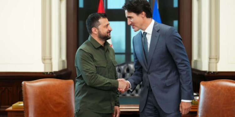 Ottawa (AFP) – Ukraine’s president met Friday with close ally Prime Minister Justin Trudeau who pledged additional aid to the war-torn country, as Volodymyr Zelensky completed the third leg in a tour aimed at bolstering international support.