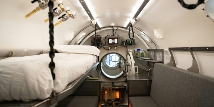 Miami (AFP) – To someday allow scientists to stay underwater conducting research for days on end, the UK-based company DEEP has designed Vanguard, a “subsea human habitat.” The company unveiled its prototype Wednesday at a hangar in Miami, Florida, hoping that oceanographers and other researchers can use it to stay underwater in the ocean for at least a week, instead of only a few hours like most expeditions.