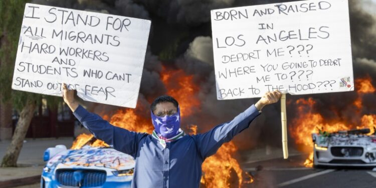 Los Angeles (United States) (AFP) – Police ordered the public to disperse from downtown Los Angeles after further unrest, with cars torched and security forces firing tear gas at protesters, in the wake of Donald Trump’s deployment of National Guard troops to America’s second-biggest city. Protests in Los Angeles, home to a large Latino population, broke out on Friday, triggered by immigration raids that resulted in dozens of arrests of what authorities say are illegal migrants and gang members. Critics say the US president — who has made clamping down on illegal migration a key pillar of his second term — was deliberately stoking tensions with his deployment of California’s National Guard, a stand-by military usually controlled by the state governor.