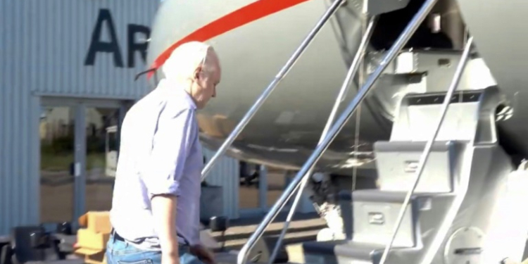 The 52-year-old Australian citizen walked out of his five-year visit to London’s high-security Belmarsh prison on Monday after agreeing to plead guilty to a single count of revealing US national defence secrets.