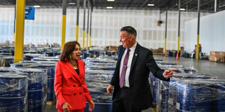 “This is the largest seizure of precursor chemicals used to manufacture methamphetamine in US history,” US Attorney for the District of Columbia Jeanine Pirro told reporters at the Port of Houston in the southern state of Texas. She spoke in a warehouse filled with plastic-wrapped blue barrels — 13,000 of them, according to Pirro — shipped from Shanghai on two separate vessels, and bound for laboratories of the Sinaloa Cartel in Mexico when they were seized “on the high seas” last week.