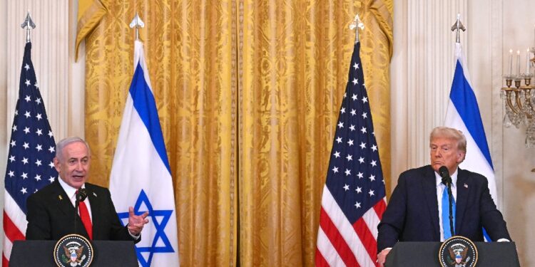 The administration of US President Donald Trump (R) announced the approval of new military aid to Israel just days after Prime Minister Benjamin Netanyahu (L) visited the White House / ©AFP