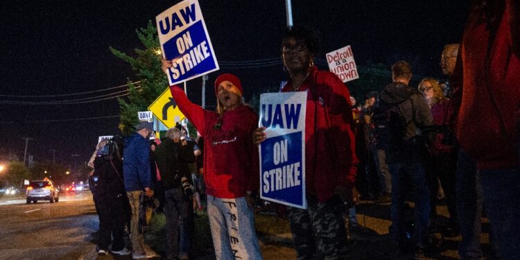Underlining the unions’ political clout, leftist Senator Bernie Sanders and Michigan Governor Gretchen Whitmer addressed a crowd of strikers late Friday.