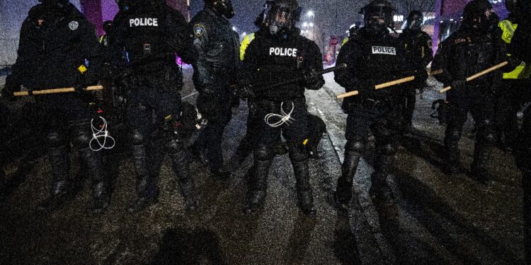 Minneapolis police deployed to face protesters outraged by the violent tactics of immigration officers in the city / ©AFP