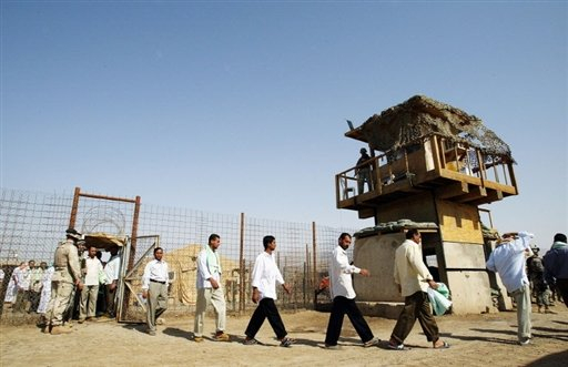 A file picture from 2006 shows freed prisoners leaving Abu Ghraib prison west of Baghdad, in Iraq. ©AFP